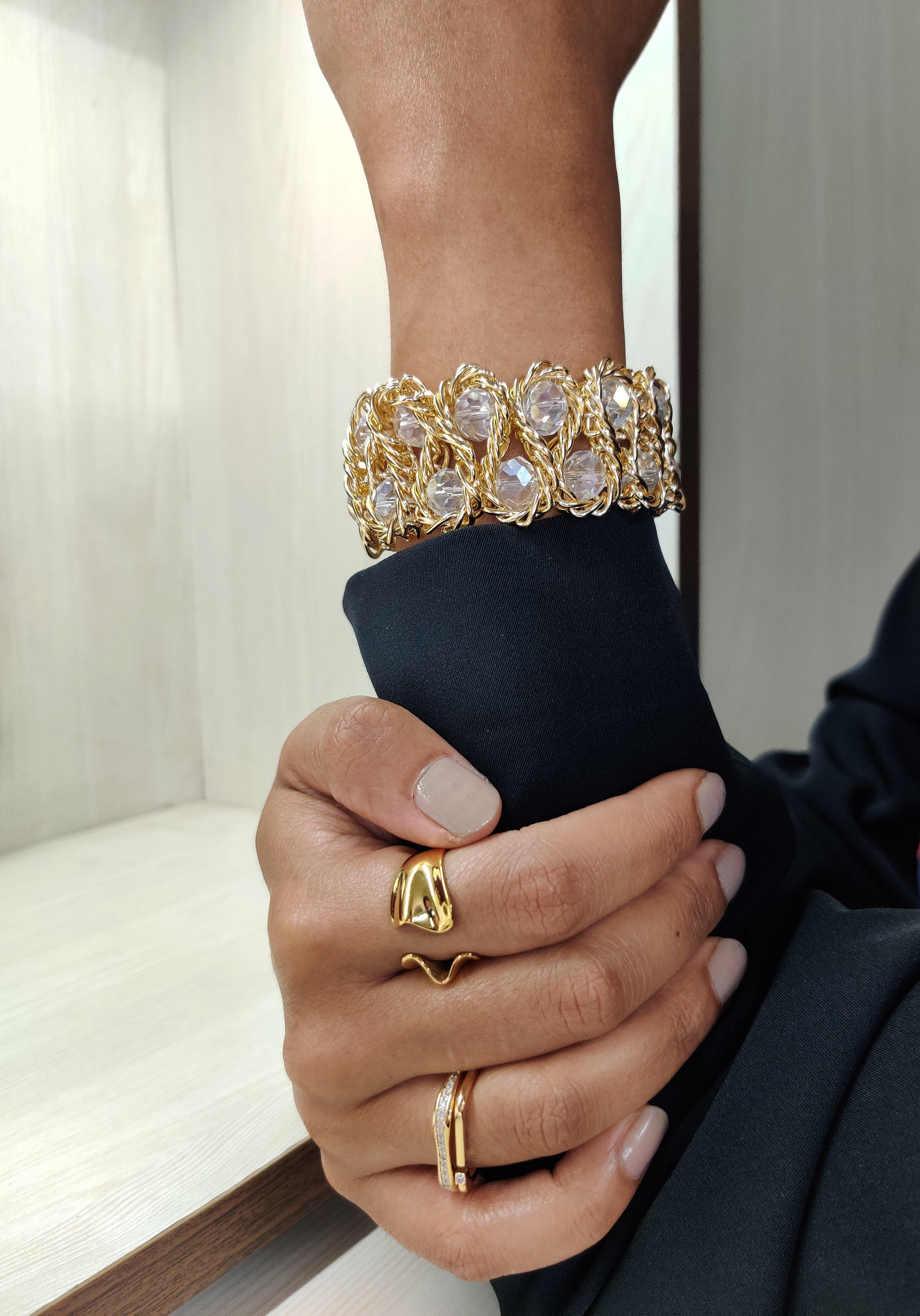 Introducing our exquisite gold plated bracelet – a true embodiment of timeless elegance and sophistication. Crafted with precision and passion, this stunning piece of jewelry is destined to become a cherished addition to your collection. The bracelet is delicately sculpted from 18k yellow gold, ensuring both durability and a lustrous, radiant finish. The bracelet features a gentle tapering, allowing it to gracefully wrap around your wrist for maximum comfort.